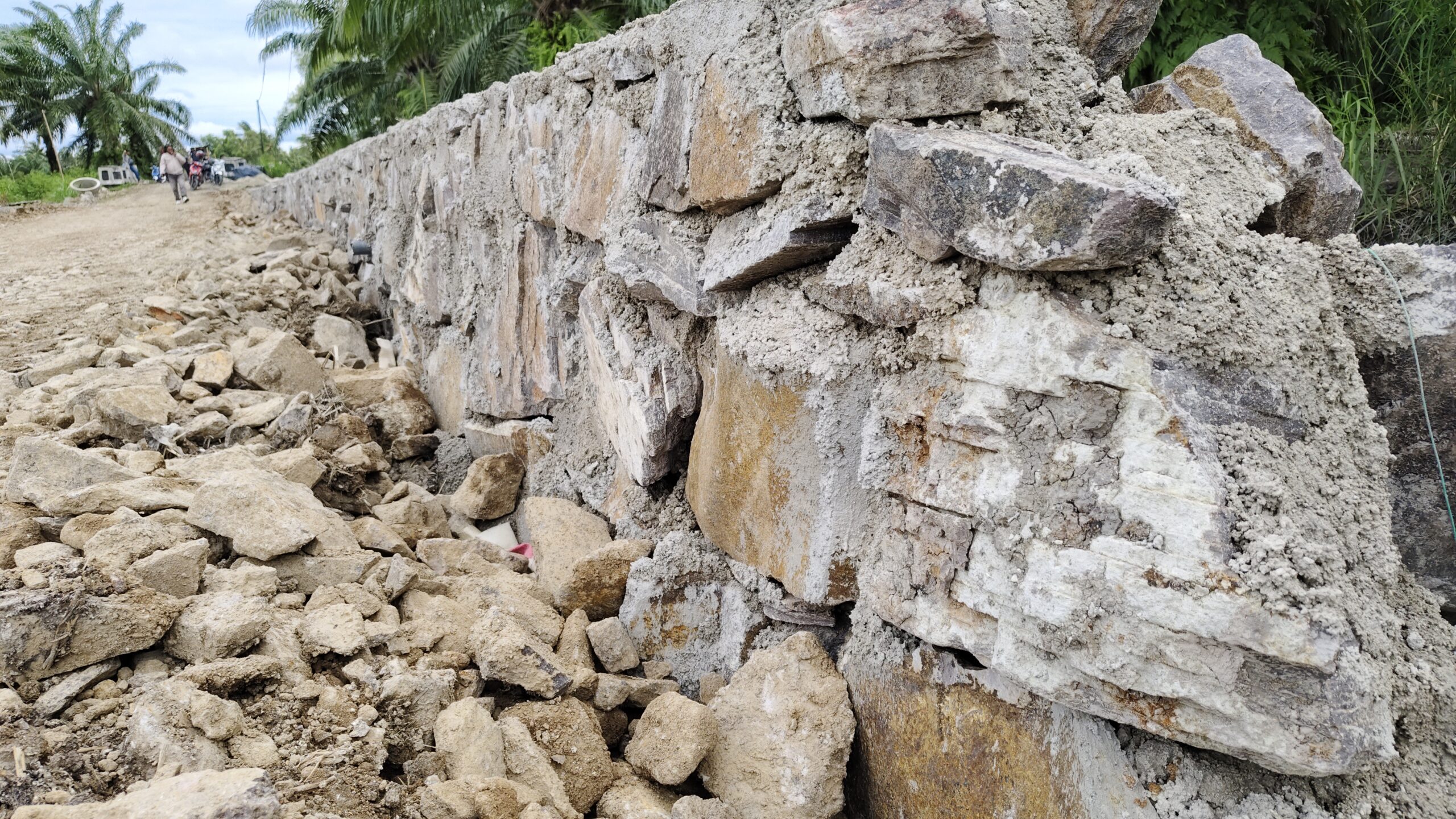 Pasalnya Hasil dari pantauan dilapangan pengerjaan Talud Penahan Tanah (TPT) tersebut tidak ada pondasi (pasangan batu dasar tidak ditanam). Parahnya lagi, pasangan batu untuk TPT bagian dalam tidak terisi batu dan adukan melainkan diisi dengan timbunan Pasir yang diduga untuk menghemat material agar mendapat keuntungan besar.
