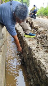 Kekhawatiran juga datang dari warga lainnya, seorang petani yang setiap hari melintasi area proyek. Ia menilai mutu pekerjaan yang buruk bisa berdampak langsung pada keselamatan dan lahan pertanian warga.