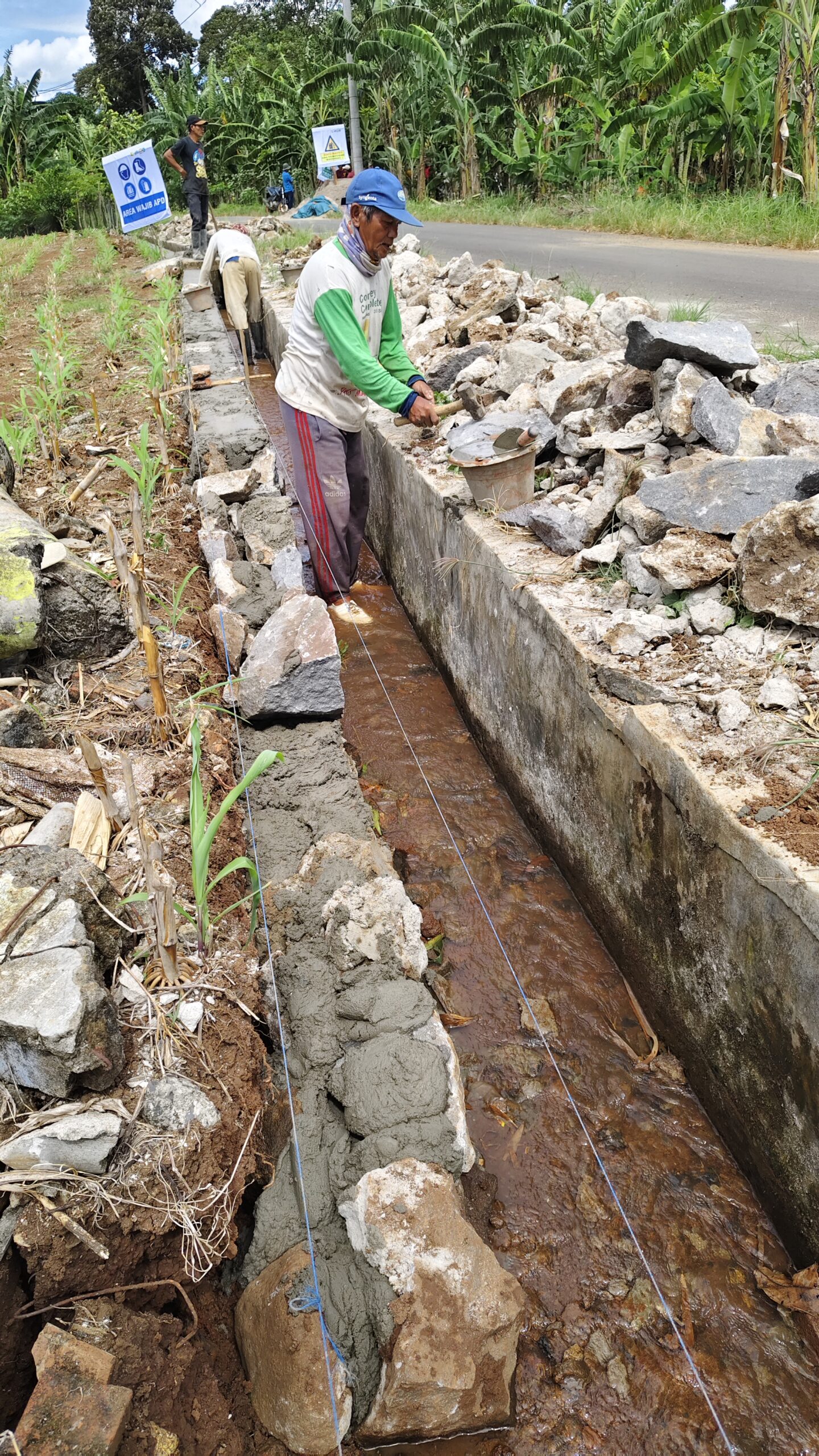 “Kalau musim hujan datang, air bisa meluap sampai ke sawah kami. Talud (irigasi) ini mestinya jadi pelindung, tapi kalau dibangun asal-asalan begini ya malah bikin takut. Kami warga kecil yang menanggung risikonya kalau ambrol,” ujarnya.